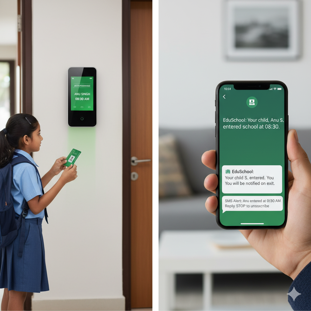 We Provide Auto Attendances and it's Entry-Exit Time Alert To Parents Via SMS Or Notification. .